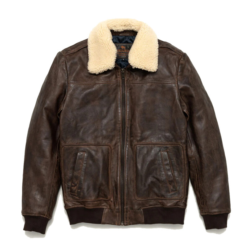 Through and through, you’ll find that no element of function, comfort, or style that has been overlooked in this classic Brown leather bomber jacket with Sherpa collar? This one promises to be your steadfast companion, embodying the essence of both timelessness and rugged refinement.