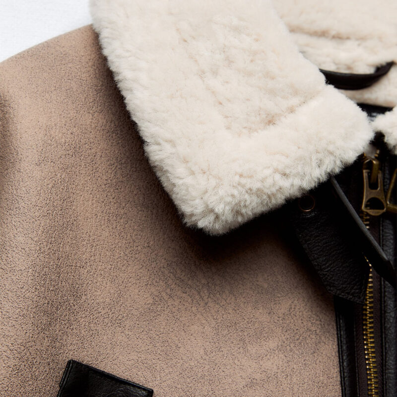 November 12, 2023Shearling Aviator Jacket Women Short Jacket – Beige